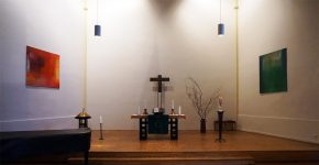 Da bleibt für mich nur noch hinzu zufügen, dass diese Ausstellung frühere und neuere Arbeiten vereint und im gewissen Sinne retrospektiv anmutet. Während die älteren Arbeiten, aus der aus vielfachen Überlagerungen von Farbschichten resultierenden Oberflächenbeschaffenheiten, eine spirituelle, nahezu religiöse Ikonografie entfalten, entwickeln die neueren Bilder offenere Farbklänge spielerischer Improvisationen! Ergänzend zum malerischen Werk findet man im Flur neben dem Bürgersaal ein kleines Kabinett